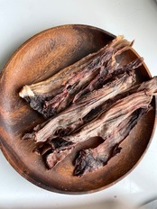 安定の鹿肉ジャーキー、スジ、レバー、ラング、背骨、胃袋、トライプ、鹿肉ふりかけから4個選んでいただきお届けします。